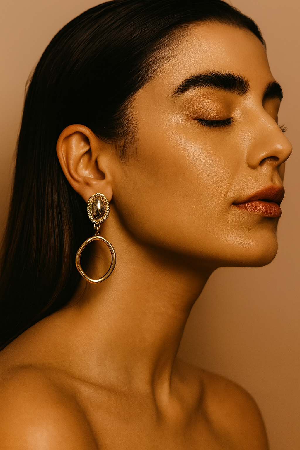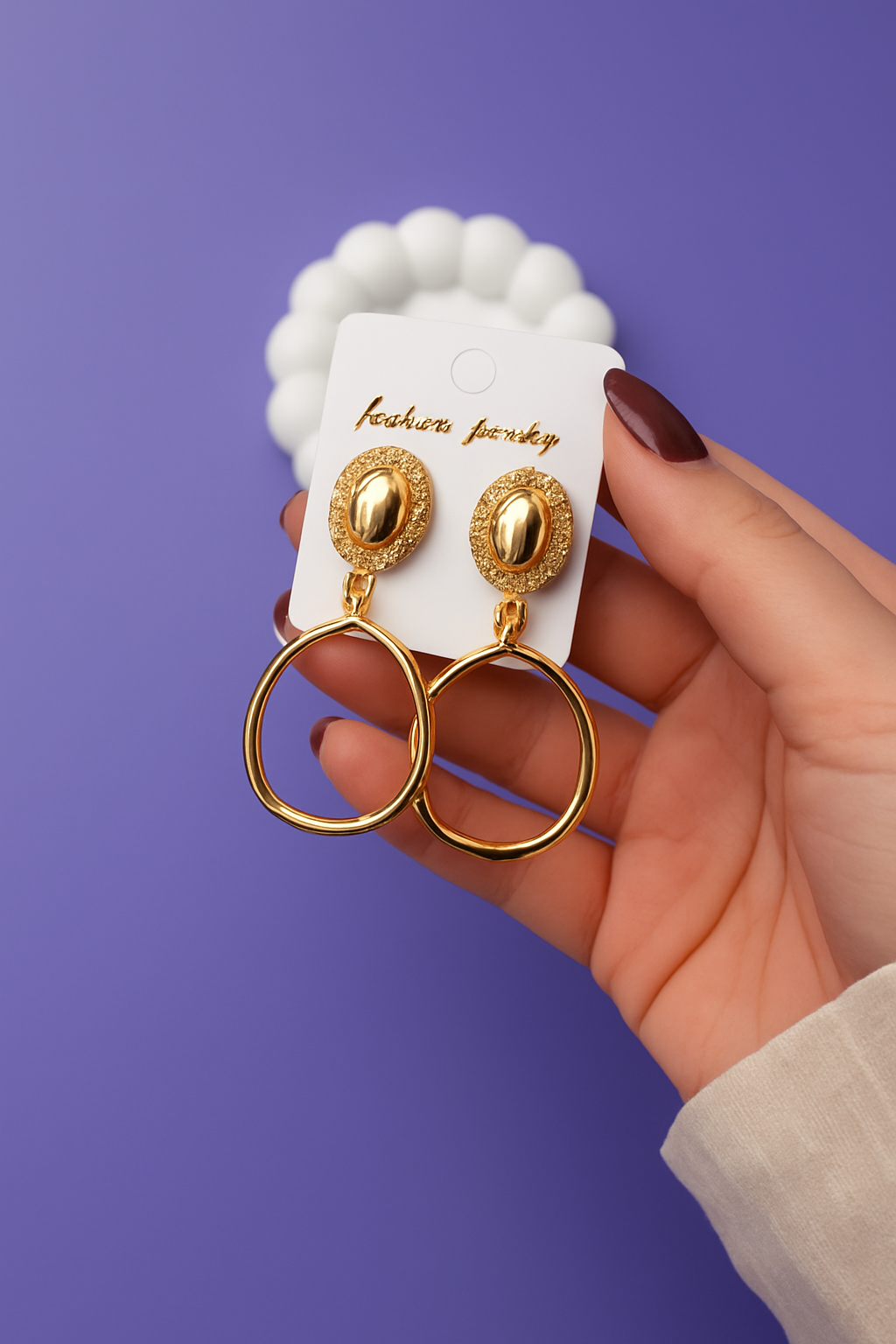 این گوشواره با طراحی کلاسیک و حلقهای آویزدار، انتخابی لوکس برای استایلهای مجلسی و رسمی است. فرم دایرهای در کنار آبکاری طلایی براق، جلوهای شیک و چشمگیر به این گوشواره بخشیده و آنرا به گزینهای ایده آل برای مهمانیها و مناسبت های خاص تبدیل کرده است.