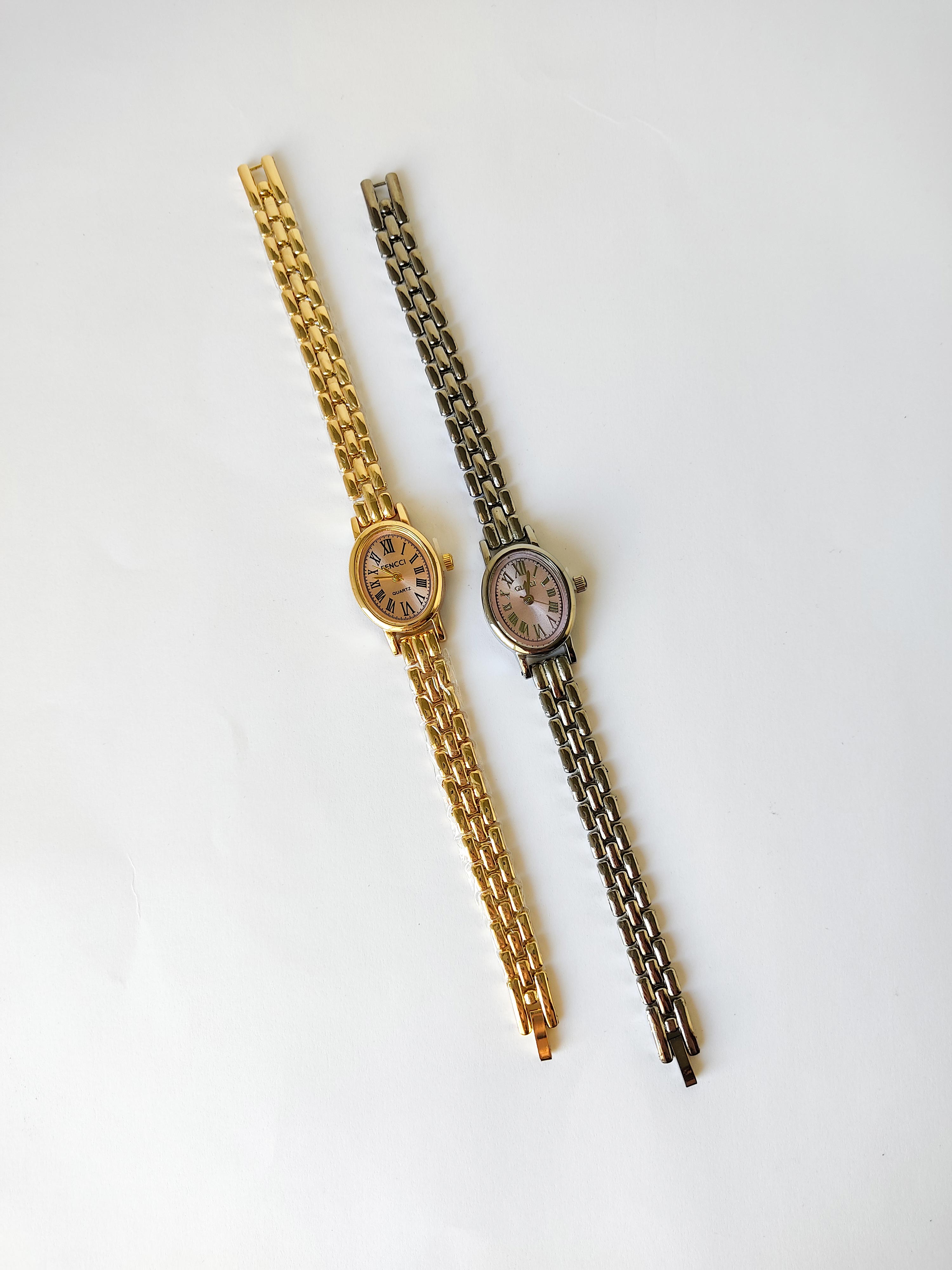 ساعت زنانه تایرا با صفحه بیضی و طراحی کلاسیک، انتخابی شیک برای استایلهای رسمی و روزمره است. بند فلزی طلایی جلوهای لوکس به این مدل بخشیده و موتور کوارتز دقیق آن عملکردی قابل اعتماد را تضمین می کند. تایرا گزینهای مناسب برای هدیه و تکمیل استایل زنانه محسوب میشود.