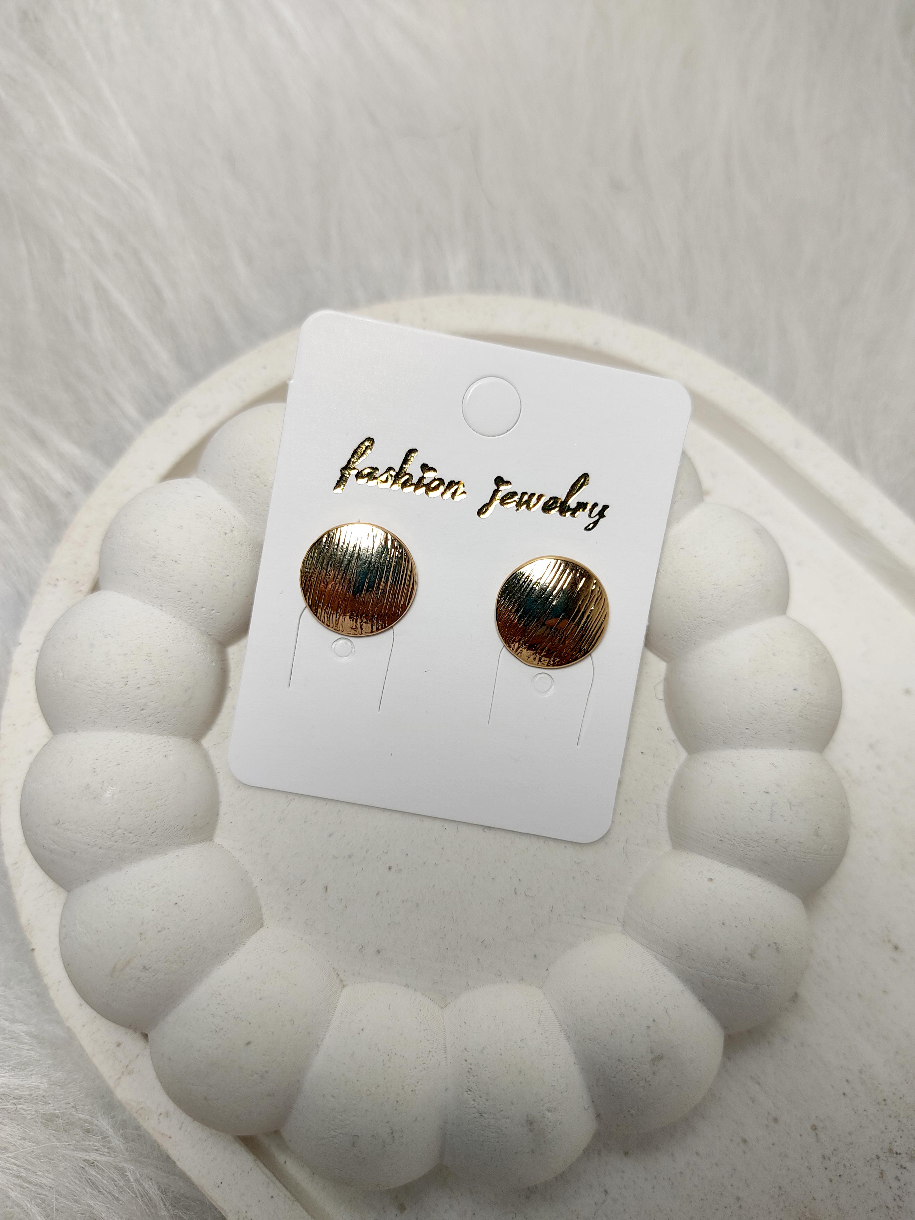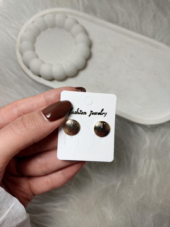 گوشواره میخی زنانه روما با طراحی دایره ای تخت و بافت خطی ظریف، انتخابی ایده آل برای طرفداران استایل مینیمال و مدرن است.