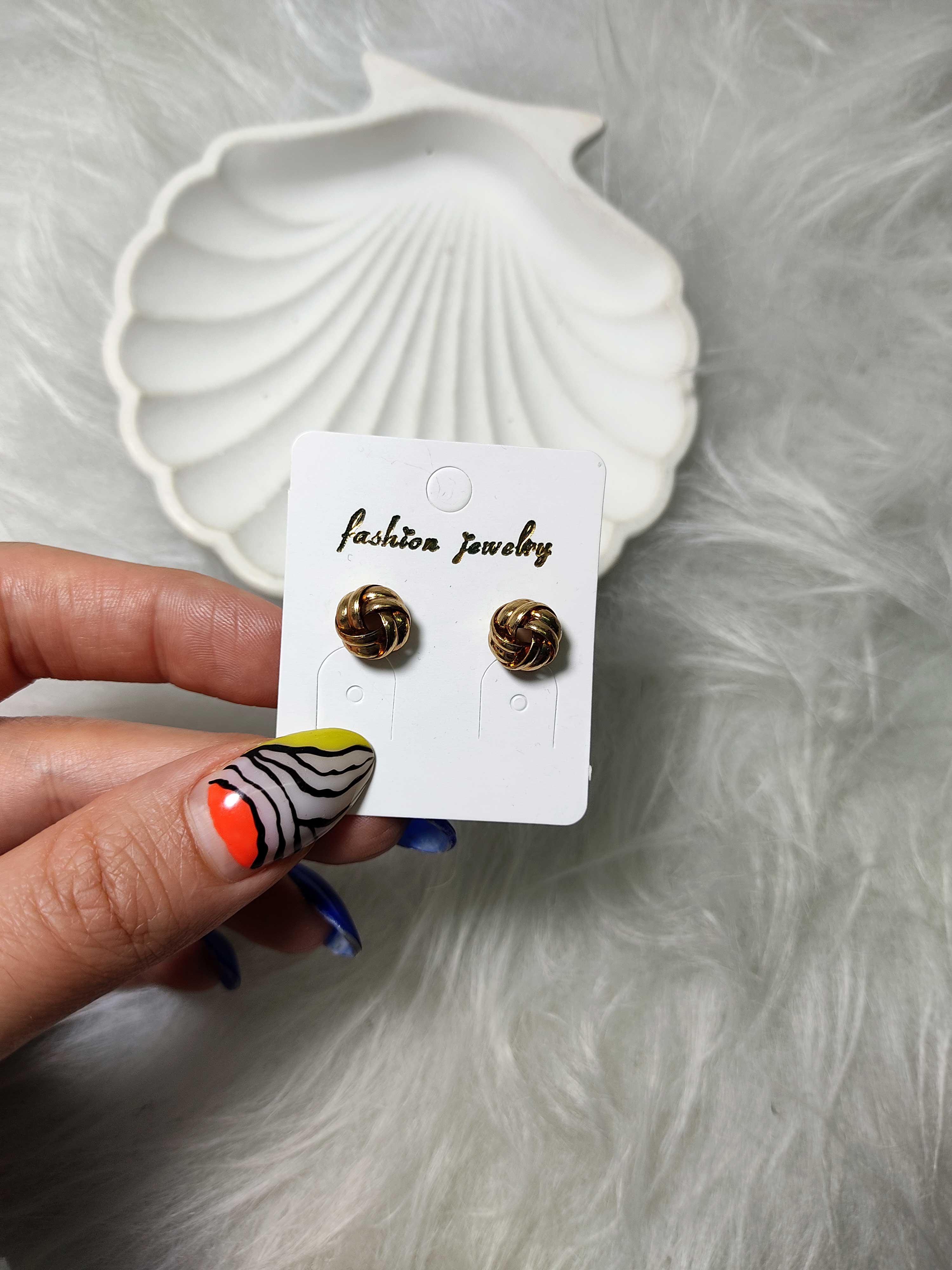 گوشواره زنانه میخی راسا با طراحی گره ای و رنگ طلایی براق، انتخابی شیک و همیشه مد برای خانم هایی هست که به استایل مینیمال و کلاسیک علاقه دارند.